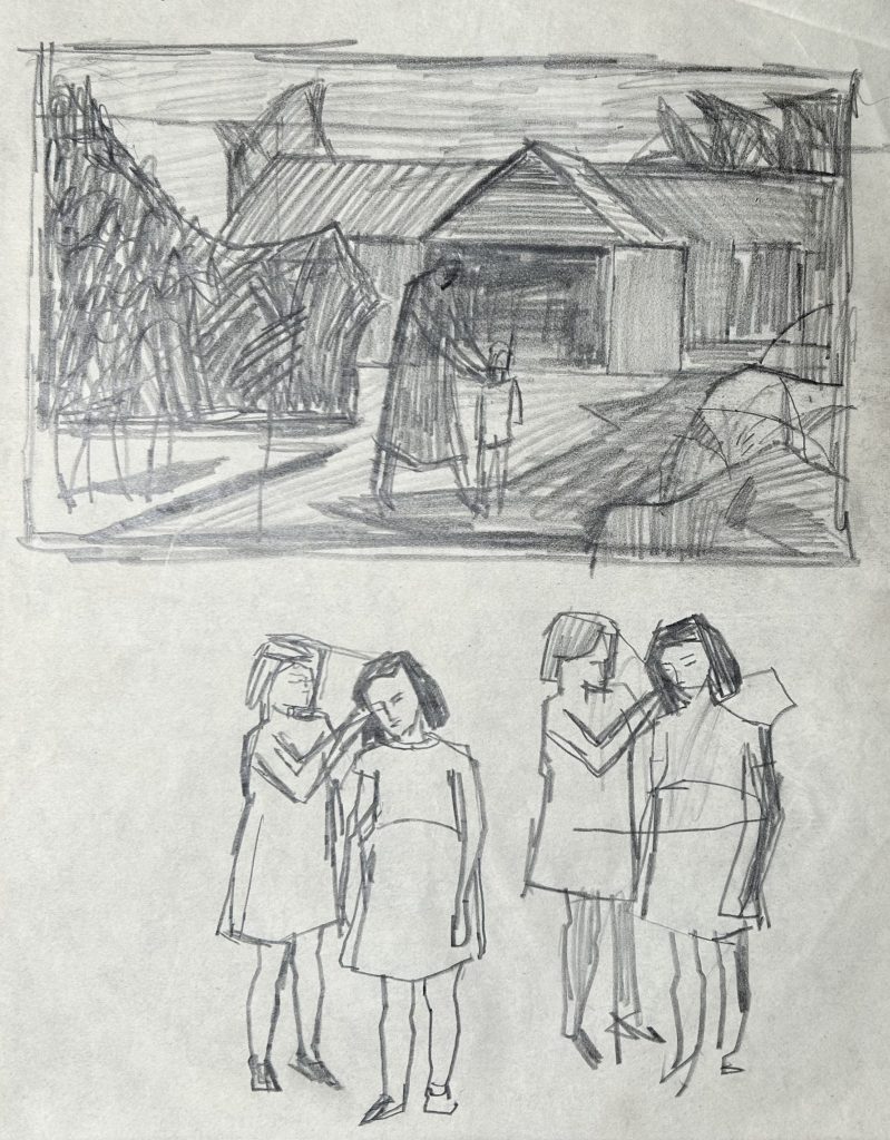 Pencil studies on single sheet. Date 1946. Sheet measures 33cm x 26cm. Mounted. Provenance: Artist Studio Sale, Phillips.