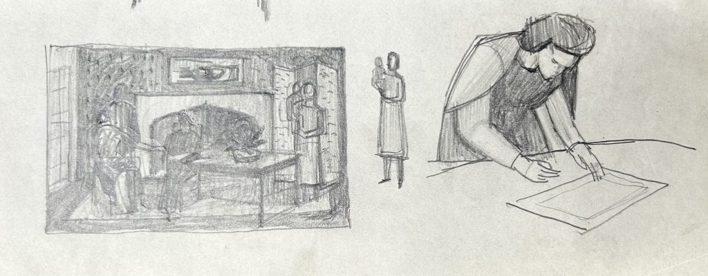 Pencil studies on single sheet. Date 1947. Sheet measures 10cm x 25cm. Mounted. Provenance: Artist Studio Sale, Phillips.