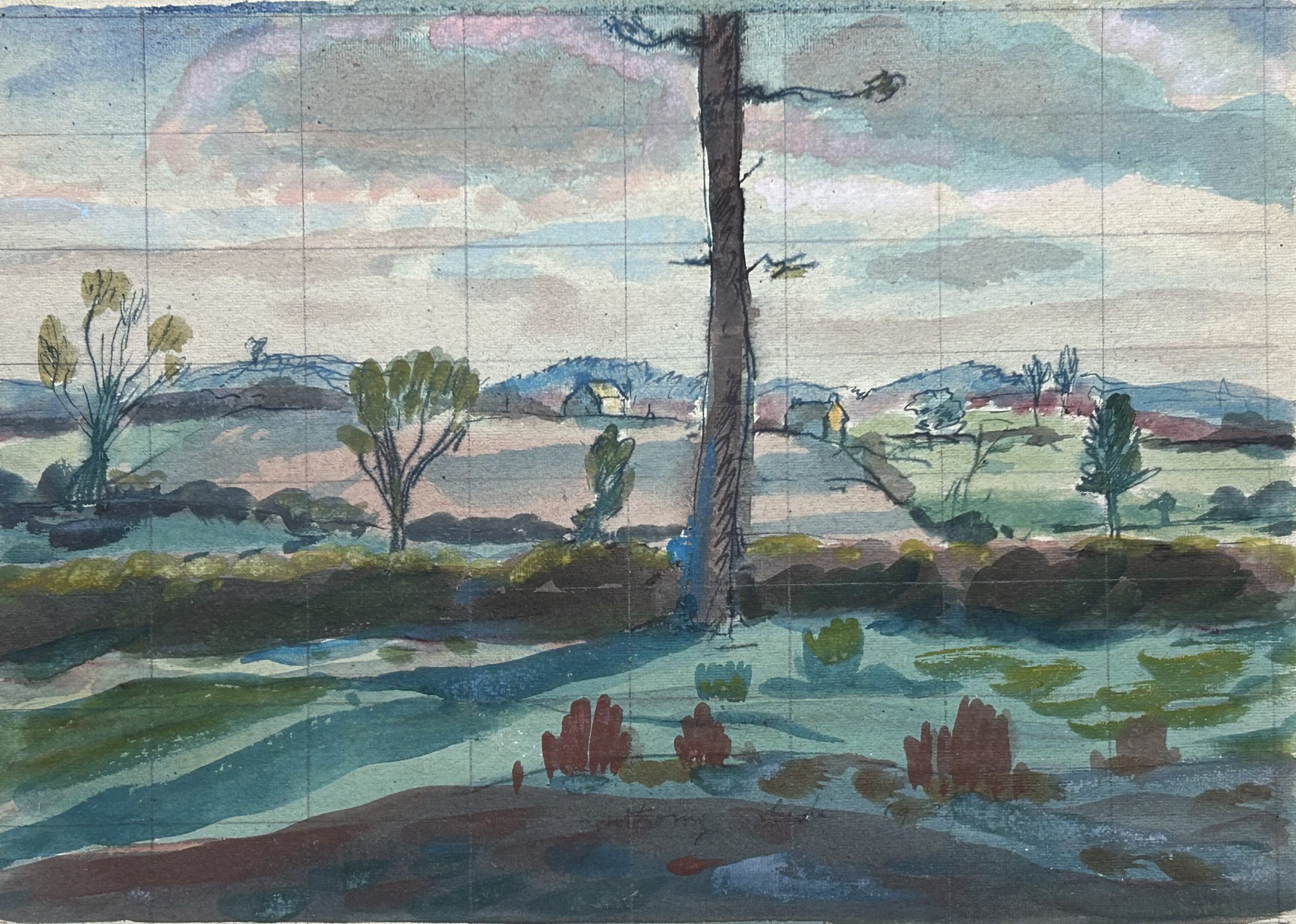 Signed watercolour on handmade paper. Image measures 26cm x 36.5cm. Conservation mounted. Condition: Laid down. Colours clear, unfaded.