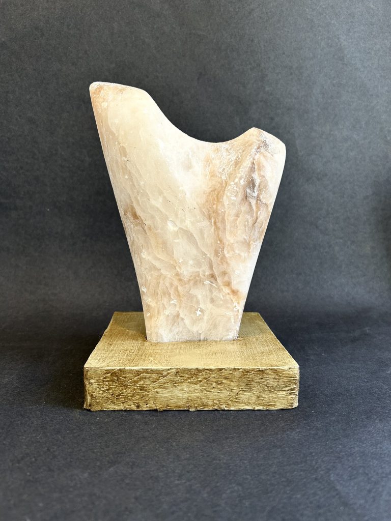 Carving in alabaster. The ‘Torso’ was a recurring form throughout Skelton’s career, cast in bronze and aluminium, as well as carved in wood. Alabaster examples are scarcer. Carving measures 22cm including wooden base. Provenance: The studio of John Skelton.
