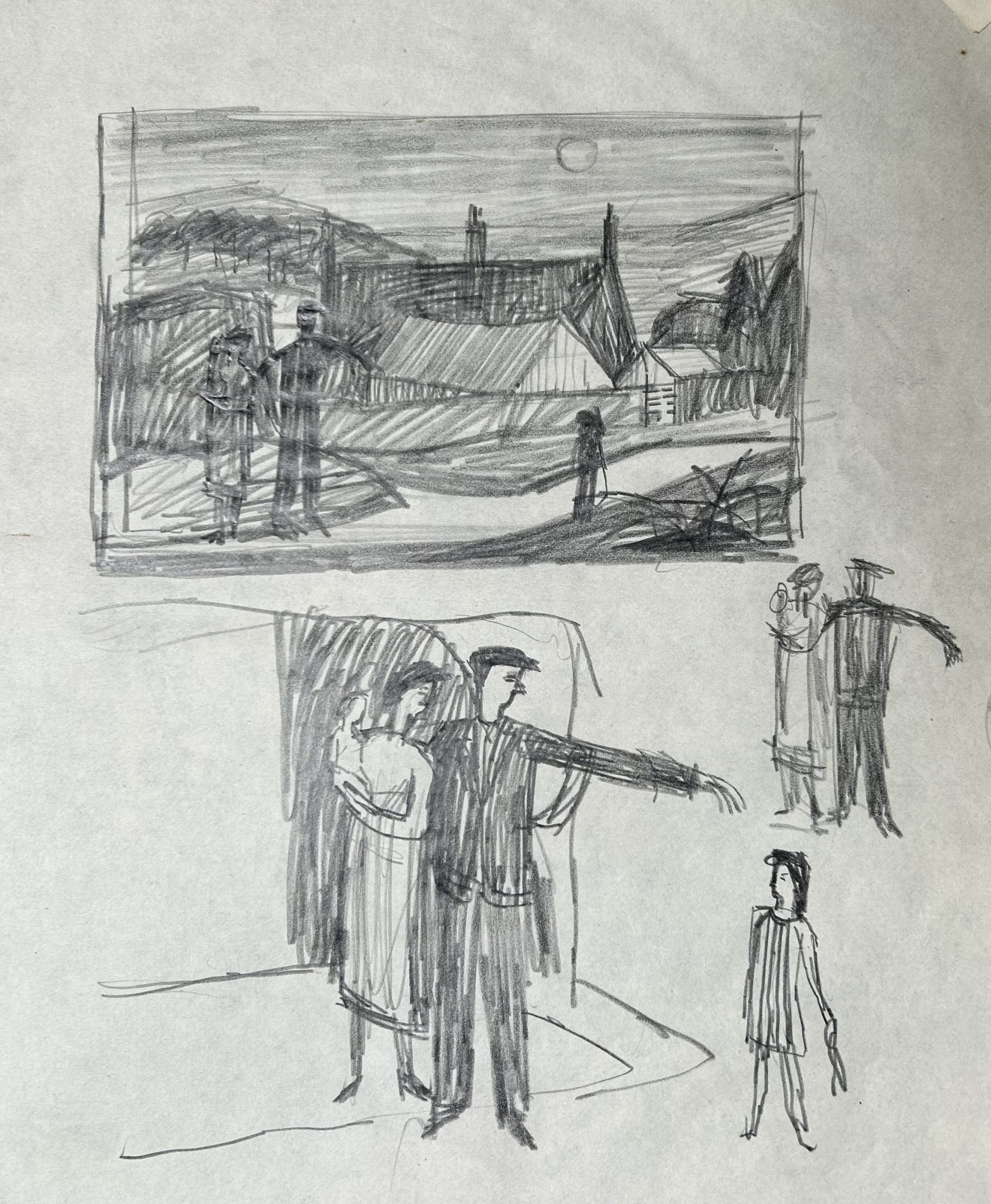 Pencil studies on single sheet. Date 1946. Sheet measures 30cm x 25cm. Mounted. Provenance: Artist Studio Sale, Phillips.