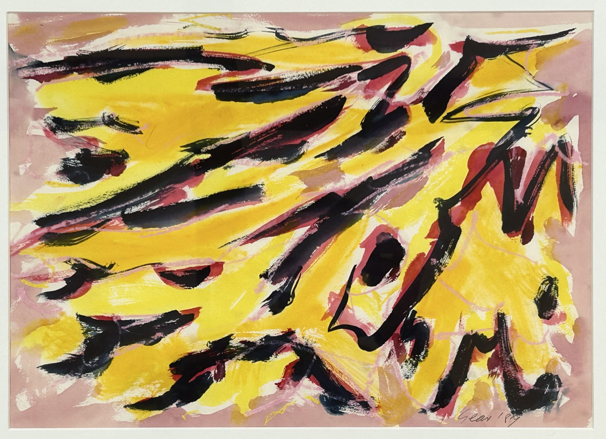 Signed acrylic, watercolour and ink, measuring 28.5cm x 40cm. Dated 1989. Framed.