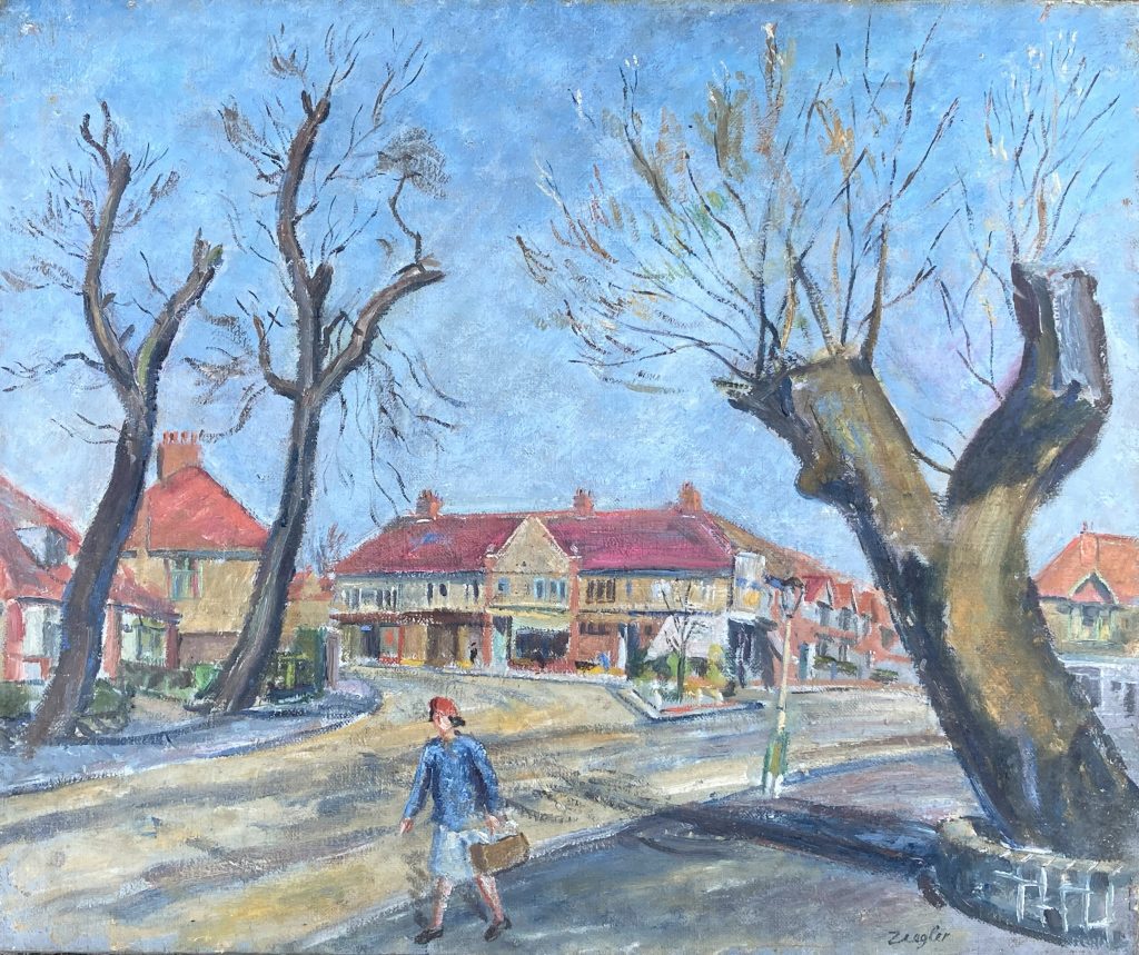 Archibald Ziegler was a painter, draughtsman and teacher, born in London. Studied at Central School of Arts and Crafts and at the Royal College of Art under William Rothenstein, 1927–30. As well as teaching drawing and painting at St Martin’s School of Art, Ziegler taught art history at Morley College in London, and for the Workers’ Educational Association. Toynbee Hall, in London’s East End, had a mural by him. Ziegler had a series of one-man shows in London, including Adams Gallery, 1935; Leger Gallery, 1938; and Ben Uri Gallery, 1950, with a retrospective five years later. Chelsea Arts Club member who lived in London. His daughter was the artist Dahlia Ziegler.