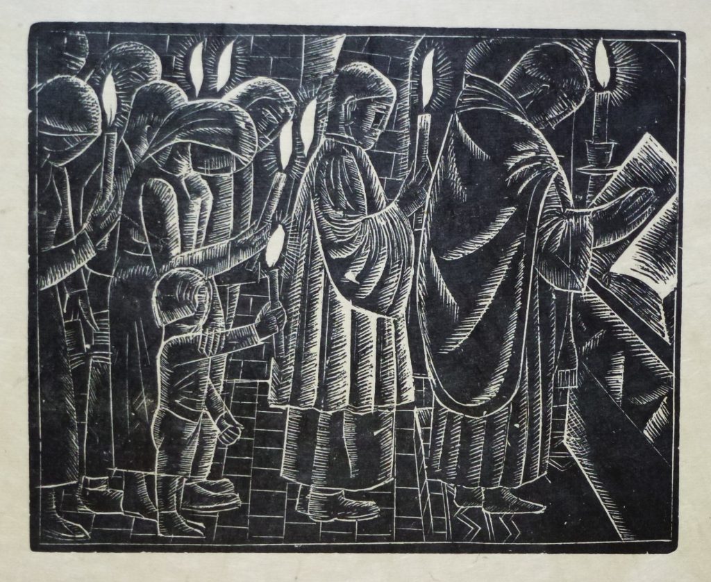 Wood engraving, printed from block in 1981 by Cloverhill. Handmade paper. Block measures 7.7cm x 9.5cm, plus borders. Conservation mounted.