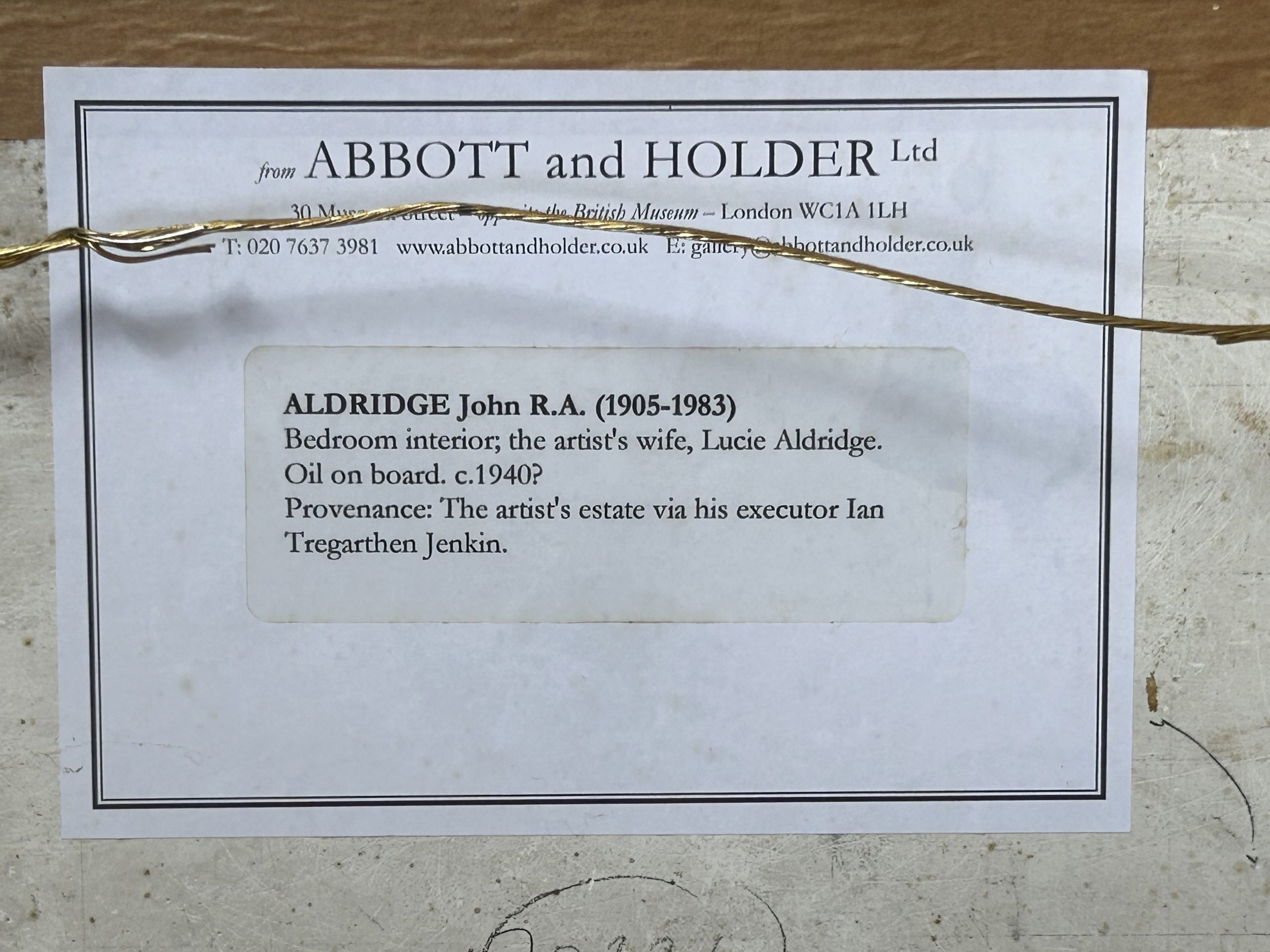 Oil on board, measuring 21cm x 28.5cm. This work has been referenced in several articles about John and Lucie Aldridge. Presented in original frame (presents