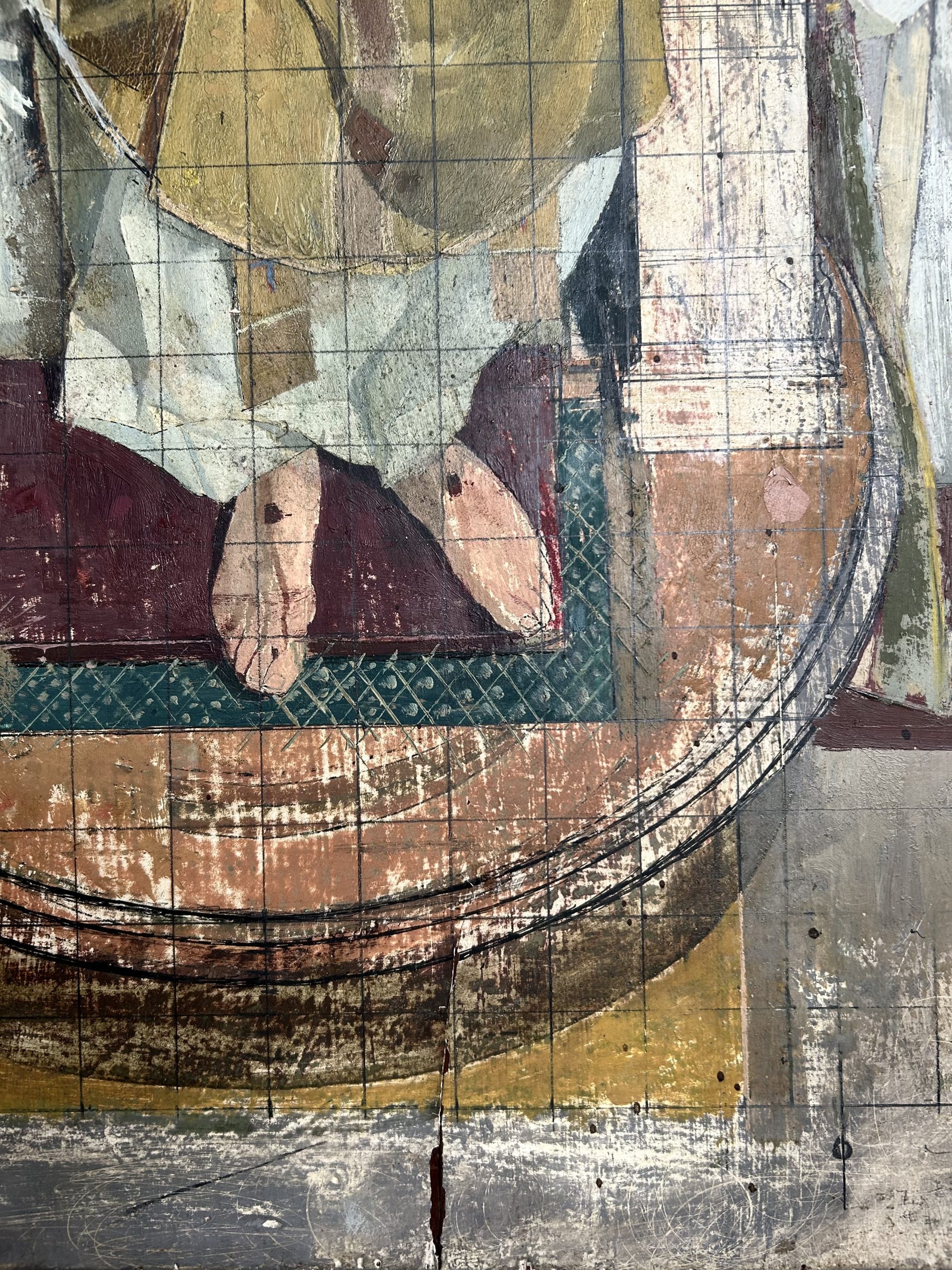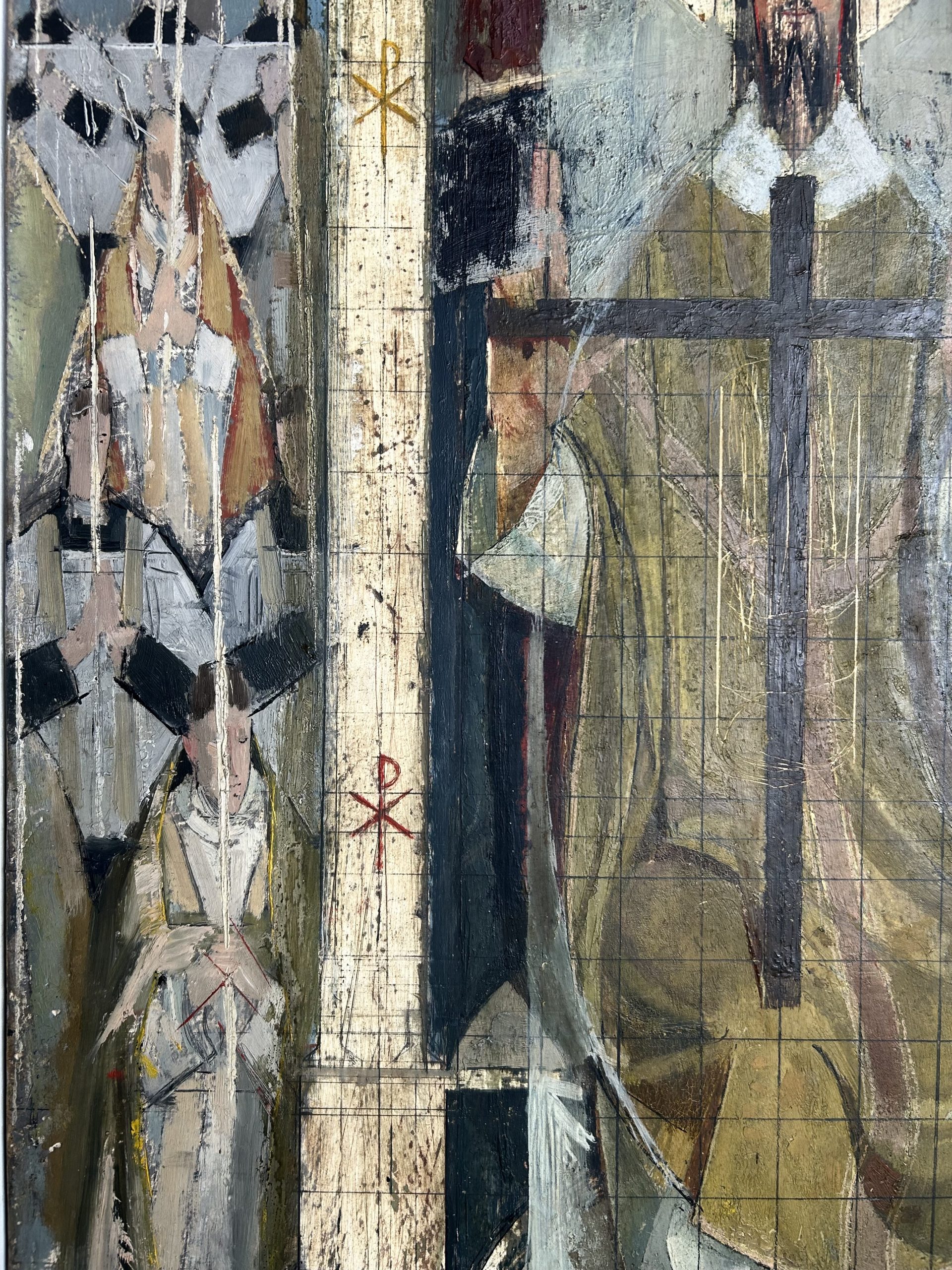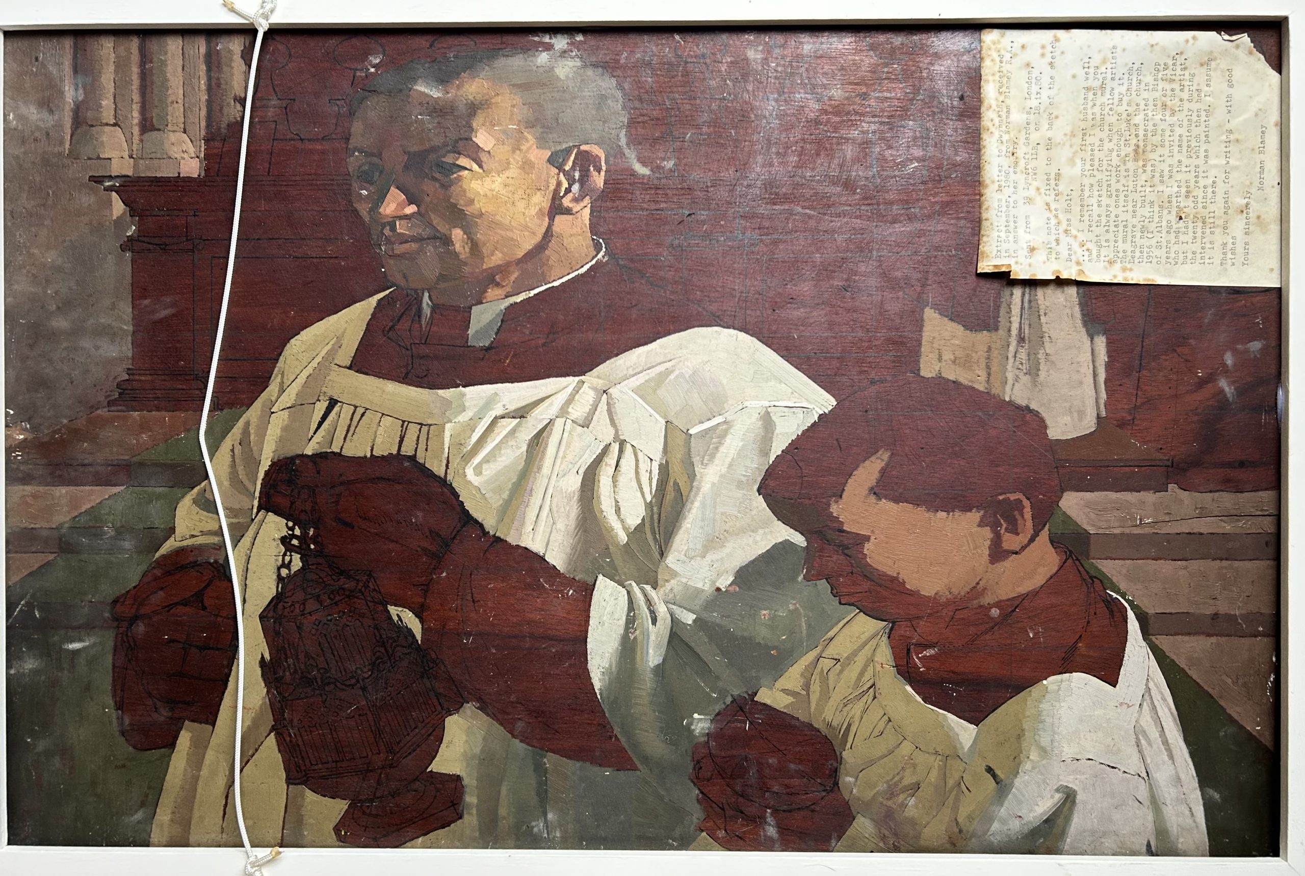 The original preparatory study in oil for the mural in St Luke’s Church, Leagrave, Luton (consecrated 1956. The work measures 65cm x 43.5cm. Framed with