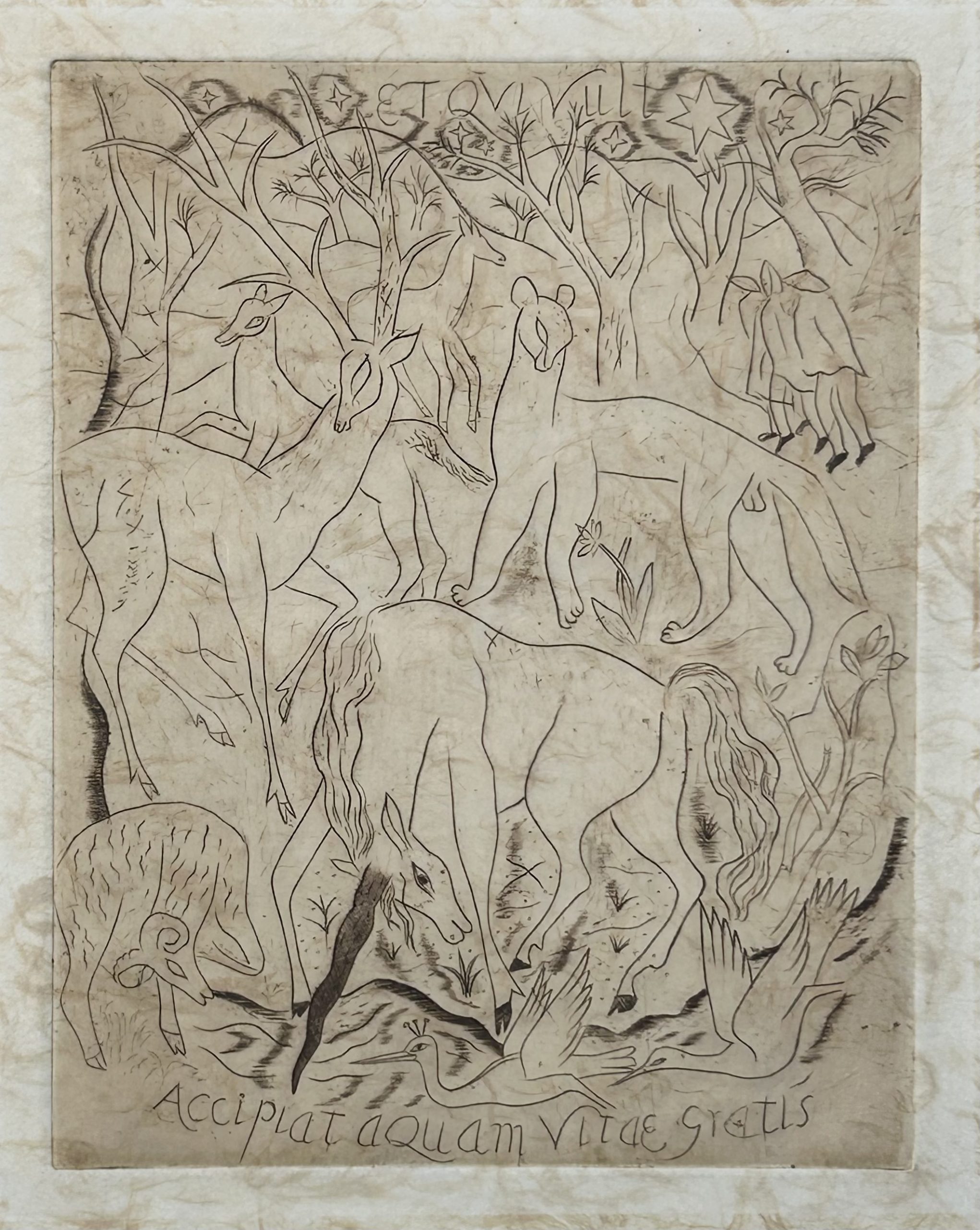 Wood engraving, printed from block in 1981 by Cloverhill. Handmade paper. Block measures 10.5cm x 7cm, plus borders. Conservation mounted.