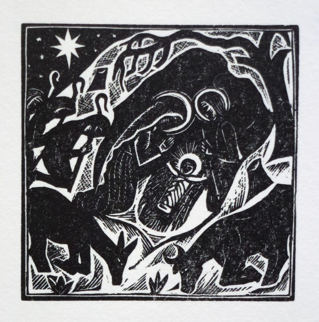 Wood engraving, printed from block in 1981 by Cloverhill. Handmade paper. Block measures 6cm x 5.8cm, plus borders. Conservation mounted.