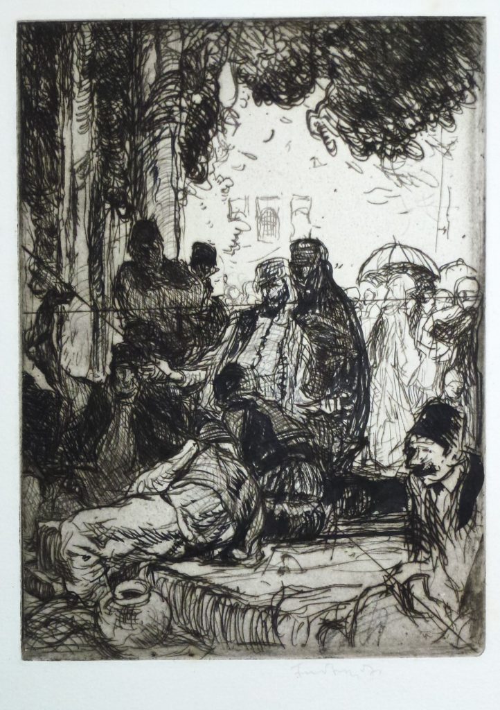 Signed etching, plate measures 24cm x 17.3cm plus full borders. A rare engraving detailing the composition used in the bottom right corner of the published etching ‘Santa Sophia, Constantinople’. Conservation mounted.