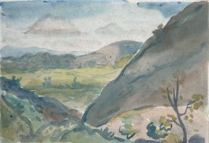 Watercolour measuring 23cm x 31.5cm. The watercolour is studio stamped verso and has the archival reference number of 271 (registered by the estate). Conservation mounted.