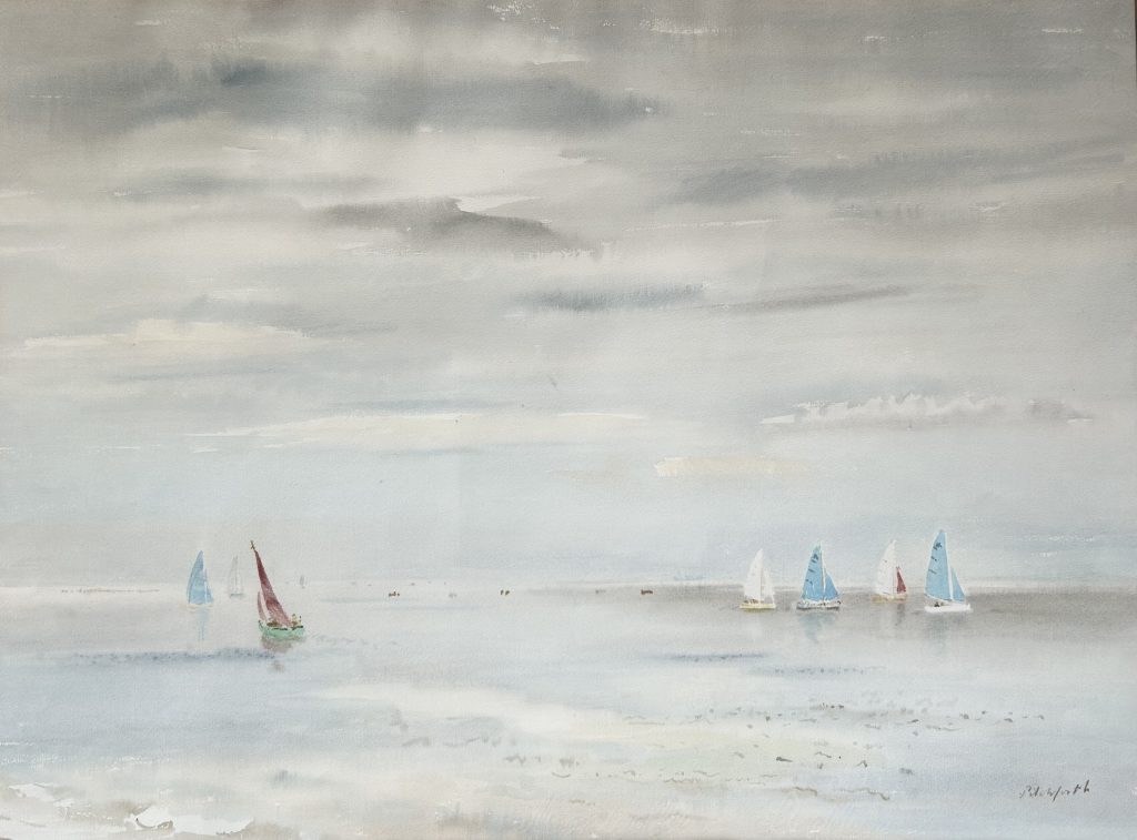 Pencil signed watercolour measuring 43cm x 58cm. Mounted.