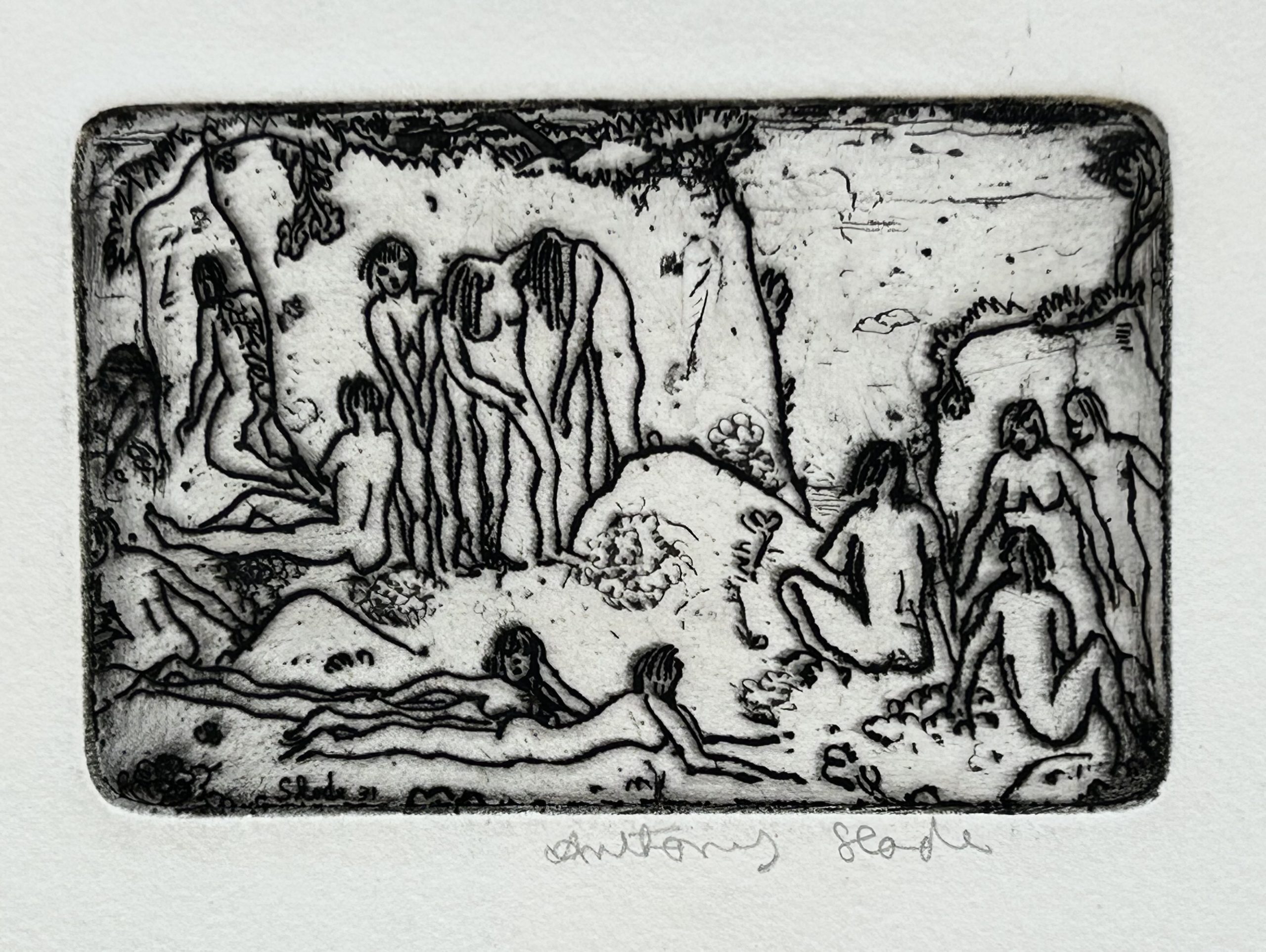 Pencil signed etching on hand made paper, printed by artist. Titled by artist to border. Plate measures 7.5cm x 11.5cm plus full borders. Conservation mounted.